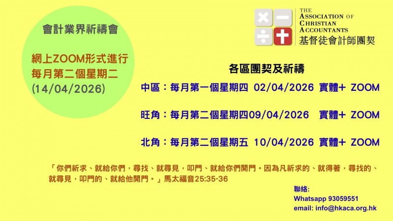 凡具專業會計師資格或從事有關會計工作的信徒均可申請加入為不同類別會員,與我們一起,彼此支持,實踐團契的使命,